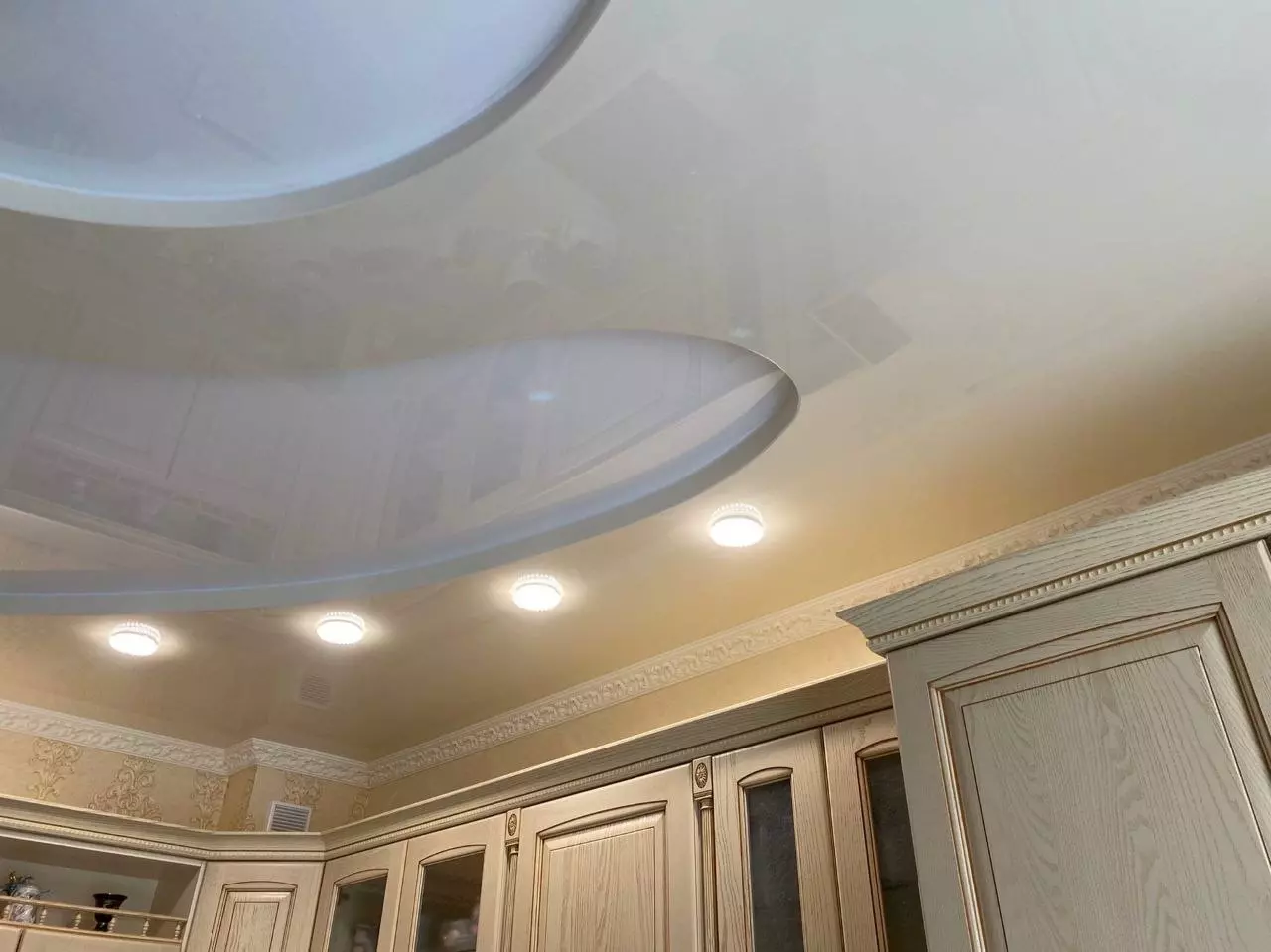 Предпочла сатиновую фактуру. Сама заказали убедилась – для кухни это лучший вариант. Гамму цветов помогли определить на консультации от фирмы. Пастельный желтый с белым выглядят роскошно.